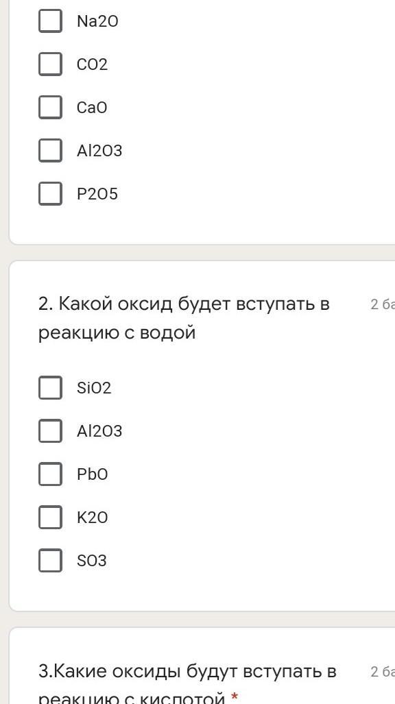 С водой будут взаимодействовать кислотные и основные оксиды. Кислотные оксиды при взаимодействии с водой будут образовывать кислоты. Из основных оксидов с водой взаимодействуют оксиды щелочных и щелочно-земельных металлов.