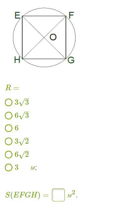 HF также является диагональю квадрата, тогда R = HF : 2 =