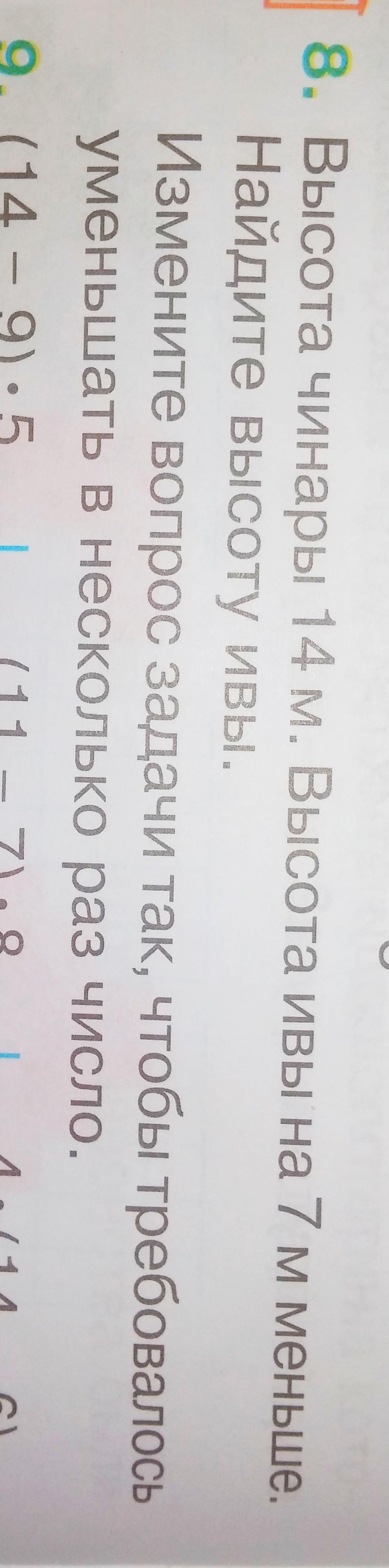 измененное условие: Высота чинары 14 м. Высота ивы в 7 раз меньше. Найдите высоту ивы. (ответ: 2 м)