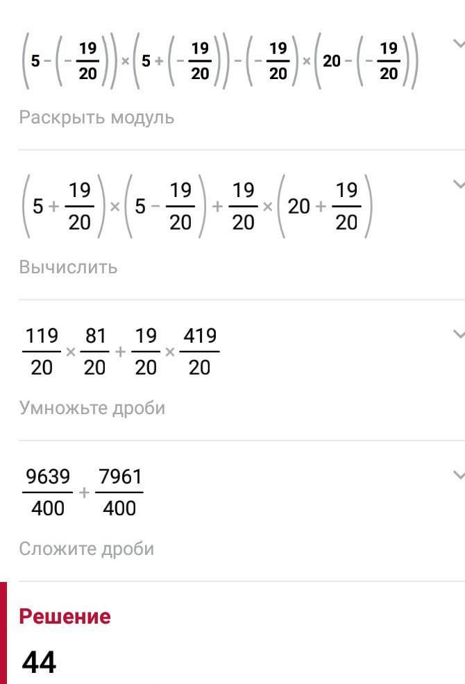 (5-а)(5+а)-а(20-а)=25+5а-5а-а^2-20a+a^2=25-20a=25-20(-19/20)=25+19=44