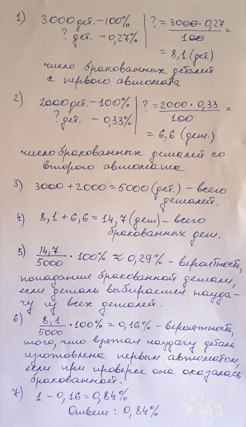 второго. Первый автомат дает 0,27 % брака, а второй – 0,33 %. Найти