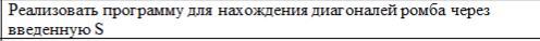 Реализовать программу для нахождения диагоналей ромба через введенную S