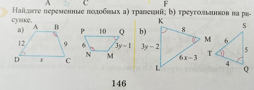 Найдите переменные подобных а) трапеций;в) треугольников на рисунке. Срочно пожалуйста