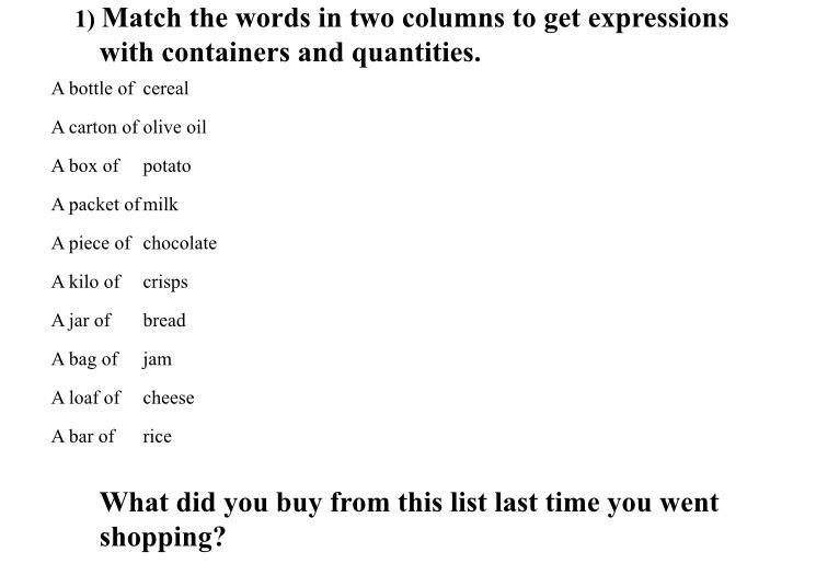 I bought a loaf of bread, a carton of milk and a bar of chocolate last time I went shopping.