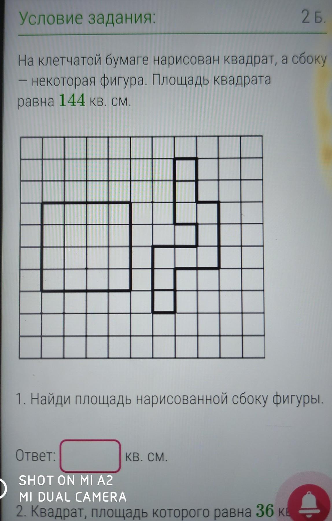 На клетчатой бумаге нарисован Квадрат, асбоку