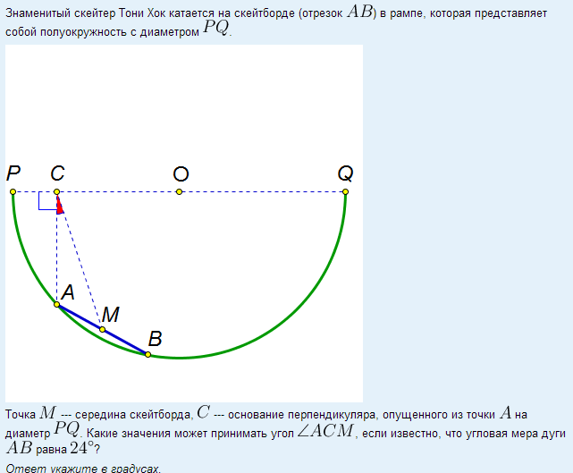 как вписанный и опирающийся на ту же дугу равен половине центрального то есть 24/2 = 12, соответственно наш искомый угол равен 12 гр