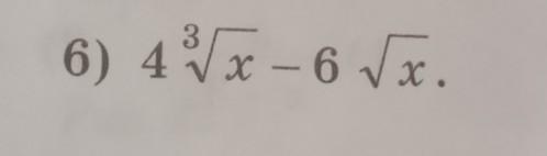 Разность четырёх кубических корней из икс и шести квадратных корней из икс.