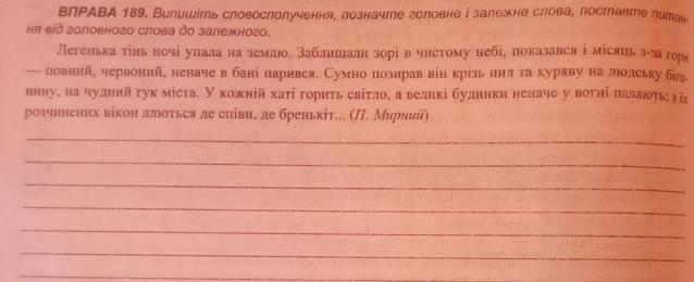 Випишіть словосполучення, позначте головне і залежне слово. Поставте питання від головного слова до залежного