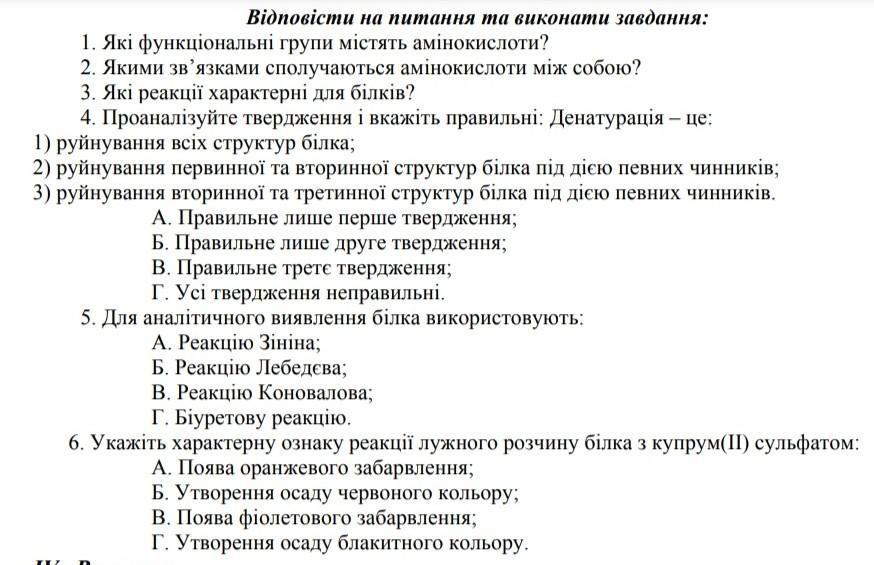 3. гідроліз денатурація кольорові реакції
