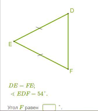 Т.к. треугольник равнобедренный, то углы при основании DF равны, поэтому угол F=54°