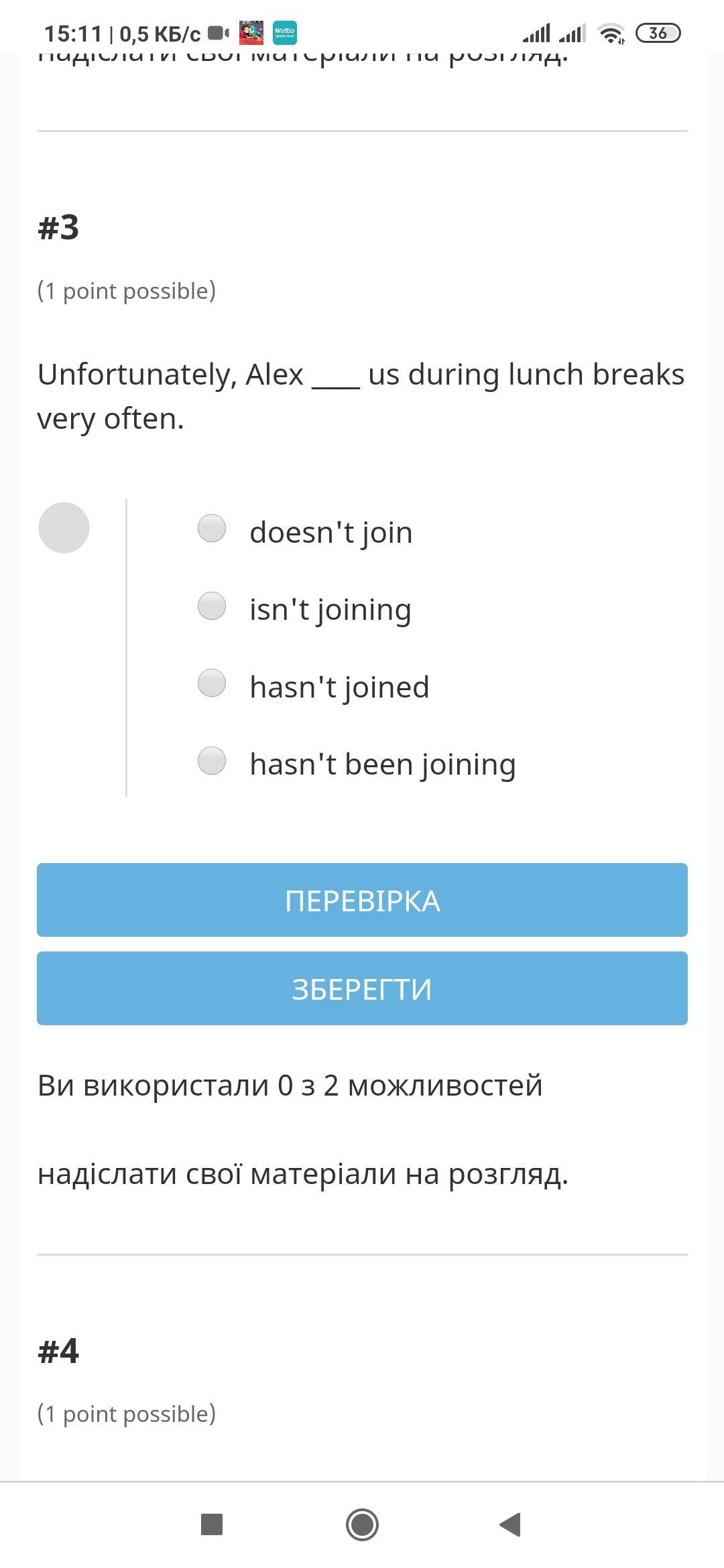 1) is taking 2)have seen 3)doesn't join 4)do you know 5)is leaving
