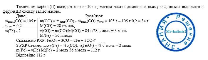 Технічним карбон(ІІ) оксидом масою 105 г, масова частка домішок в якому 0,2, можна відновити з