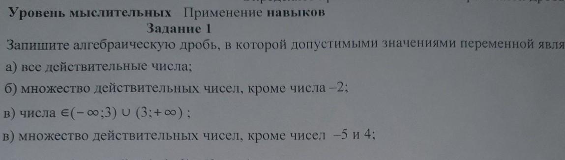 Запишите алгебраическую дробь, в которой допустимыми зназначениями переменной являются: