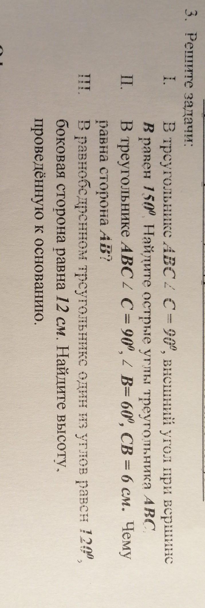 1. Так как внешний угол равен 150° , то один из острых углов равен 180°-150°=30°, значит второй острый равен 60°
