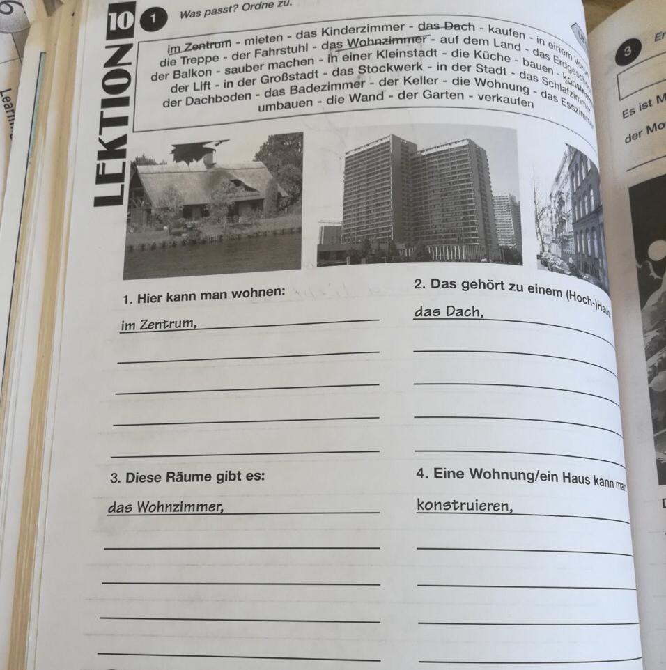2. die Treppe, der Fahrstuhl, das Erdgeschoss, der Balkon, der Lift, das Stockwerk, das Dachboden, die Wohnung, die Wand, der Garten.