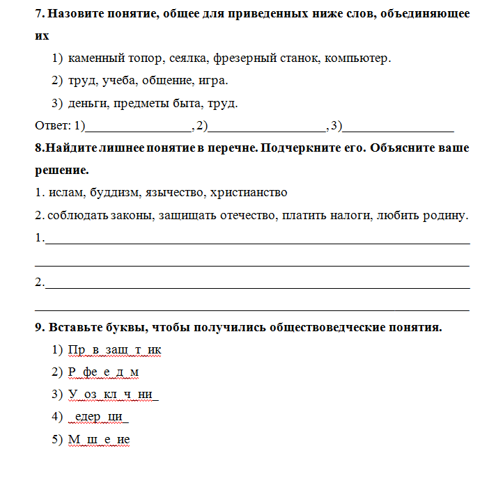 8)лишнее: язычество , любить родину , 9)референдум , умозаключение,провозглашать