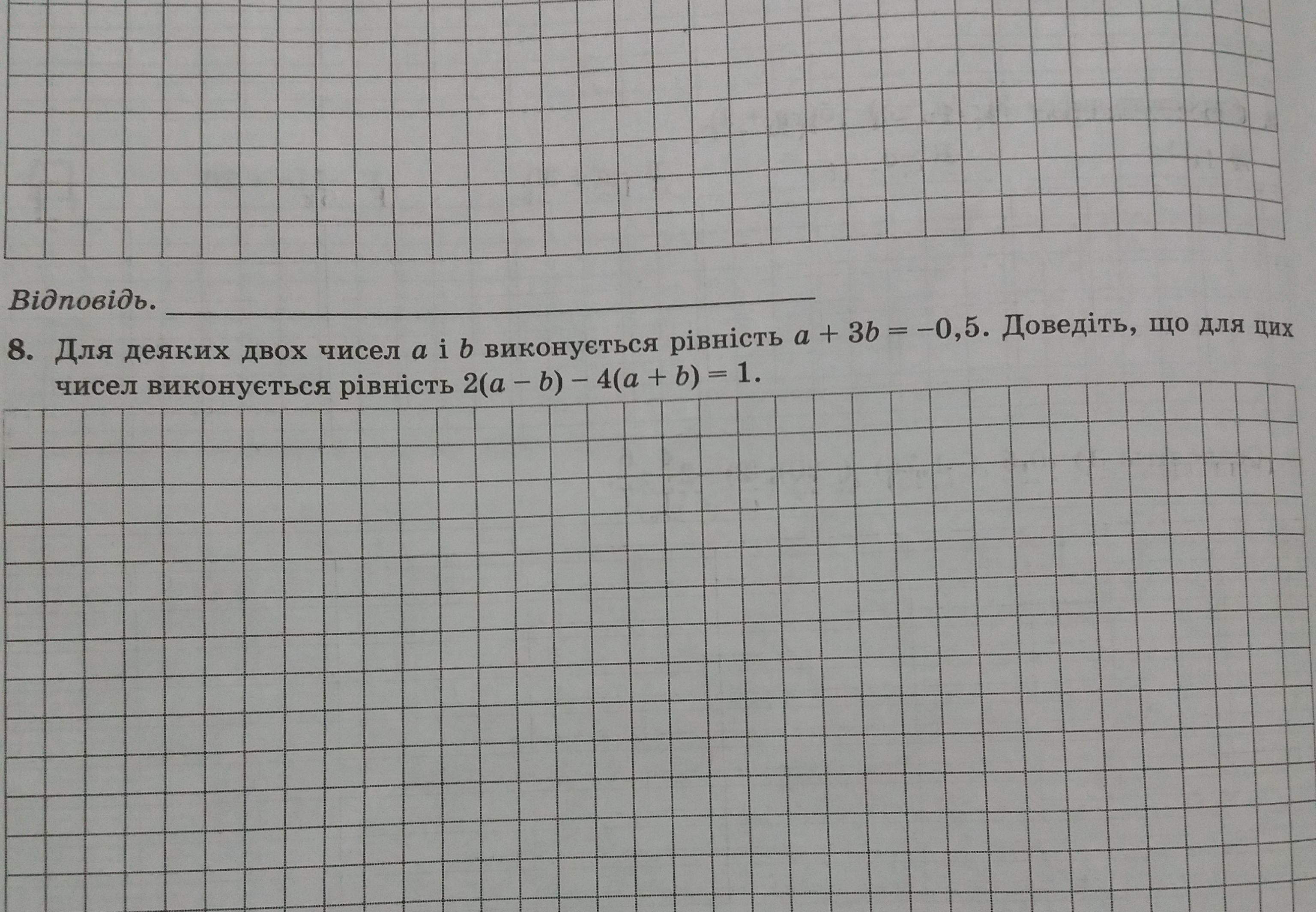 2(a-b)-4(a+b)= 2(-0,5-3b-b)-4(-0,5-3b+b)= 2(-0,5-4b)-4(-0,5-2b)= -1-8b+2+8b= 1, що і треба будо довести