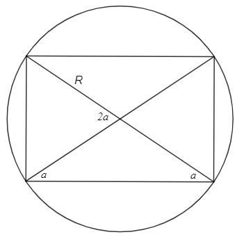 Вписанный прямой угол опирается на диаметр. Диагональ прямоугольника - диаметр описанной окружности, 2R.