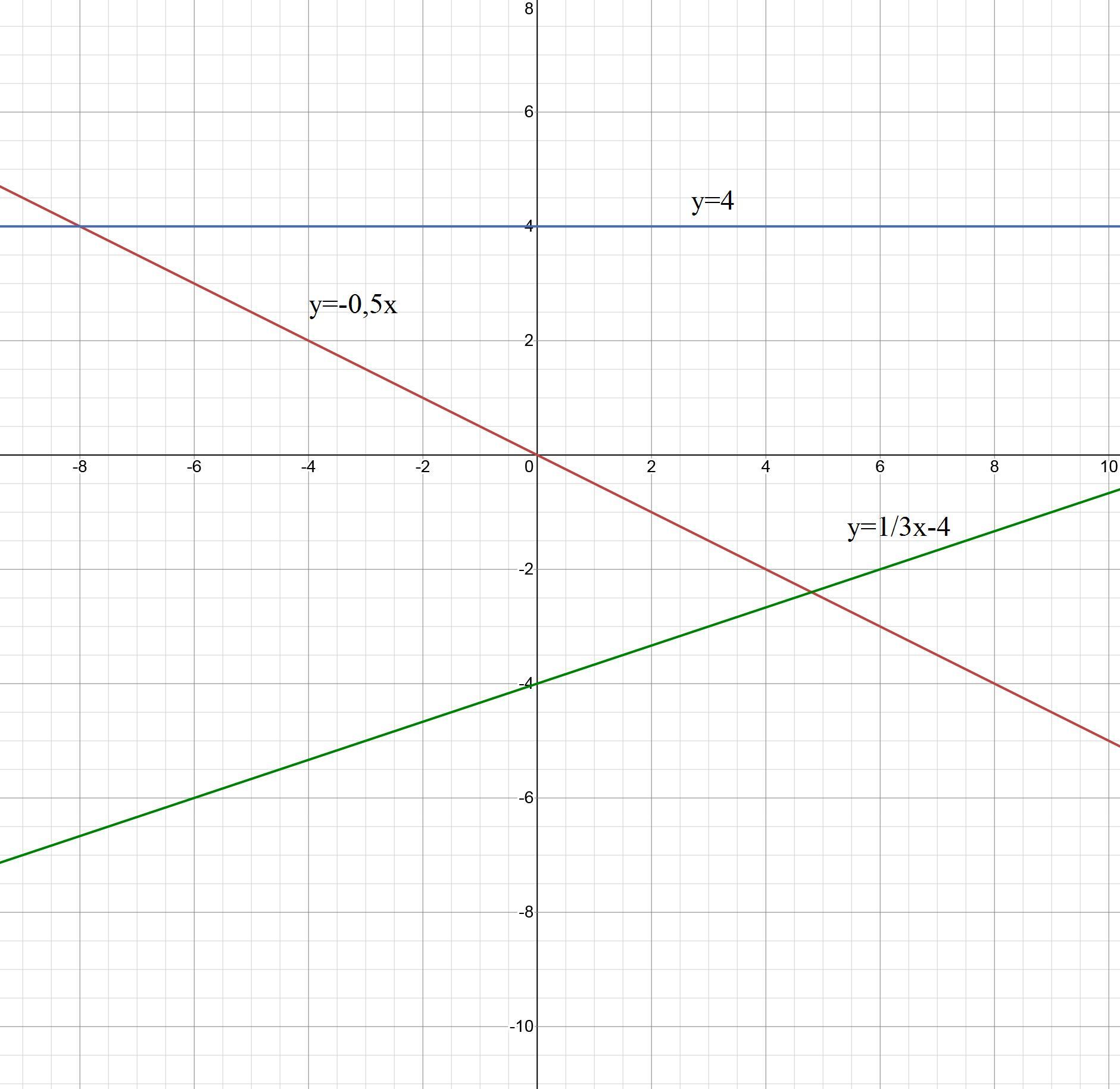 1)у=-0,5х; 2)у=-4; 3)у=1/3х-4.
