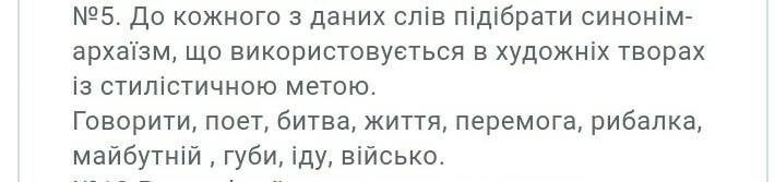 мовляти, піїт, баталія, жилба, звитяга,забродчик, прийшлий, губи(не знаю), ступаю, дружина