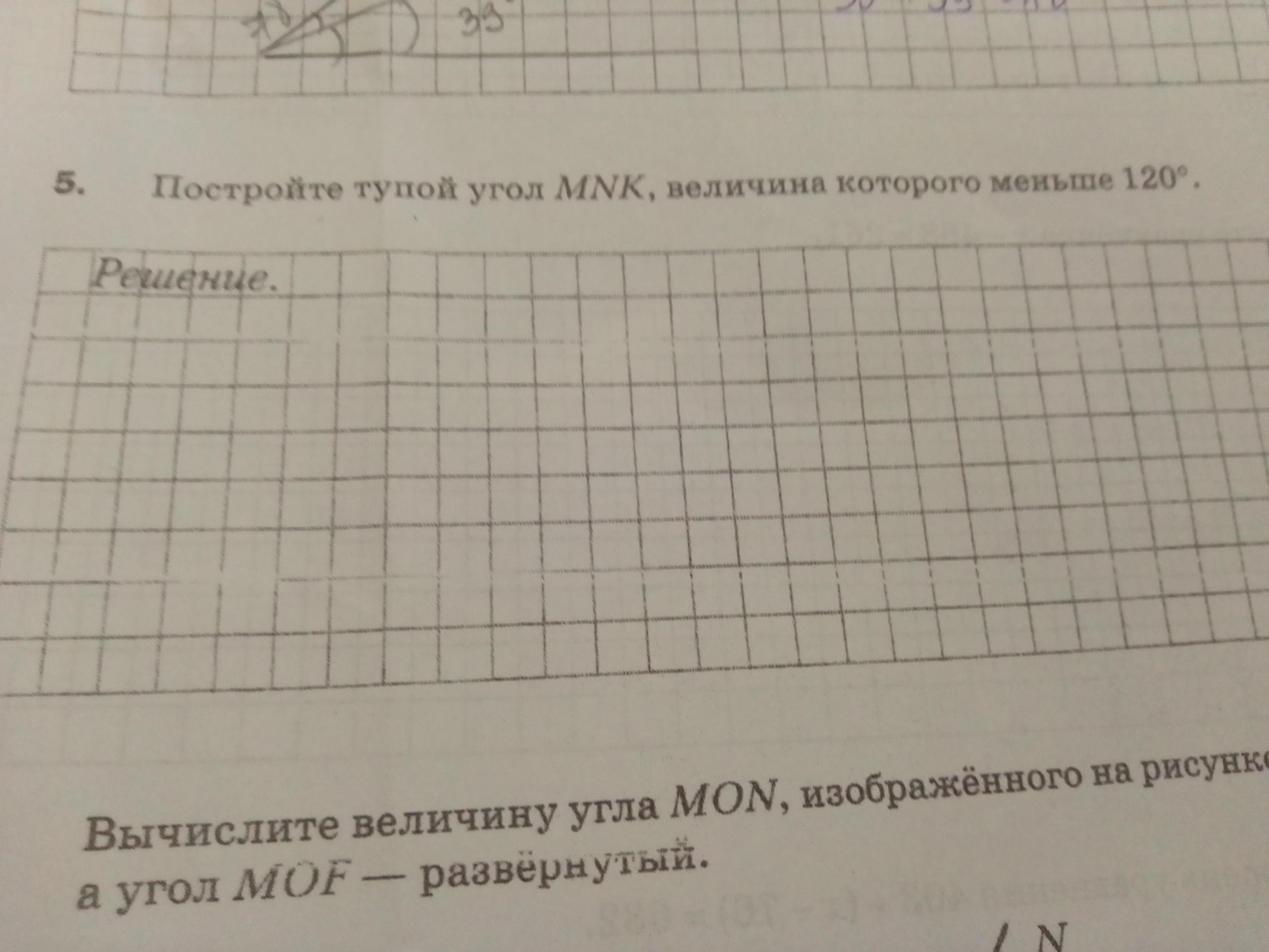 Нужно построить угол (как на рисунке) с помощью транспортира. Так, чтобы угол был больше 90градусов и меньше 120градусов. Удачи)