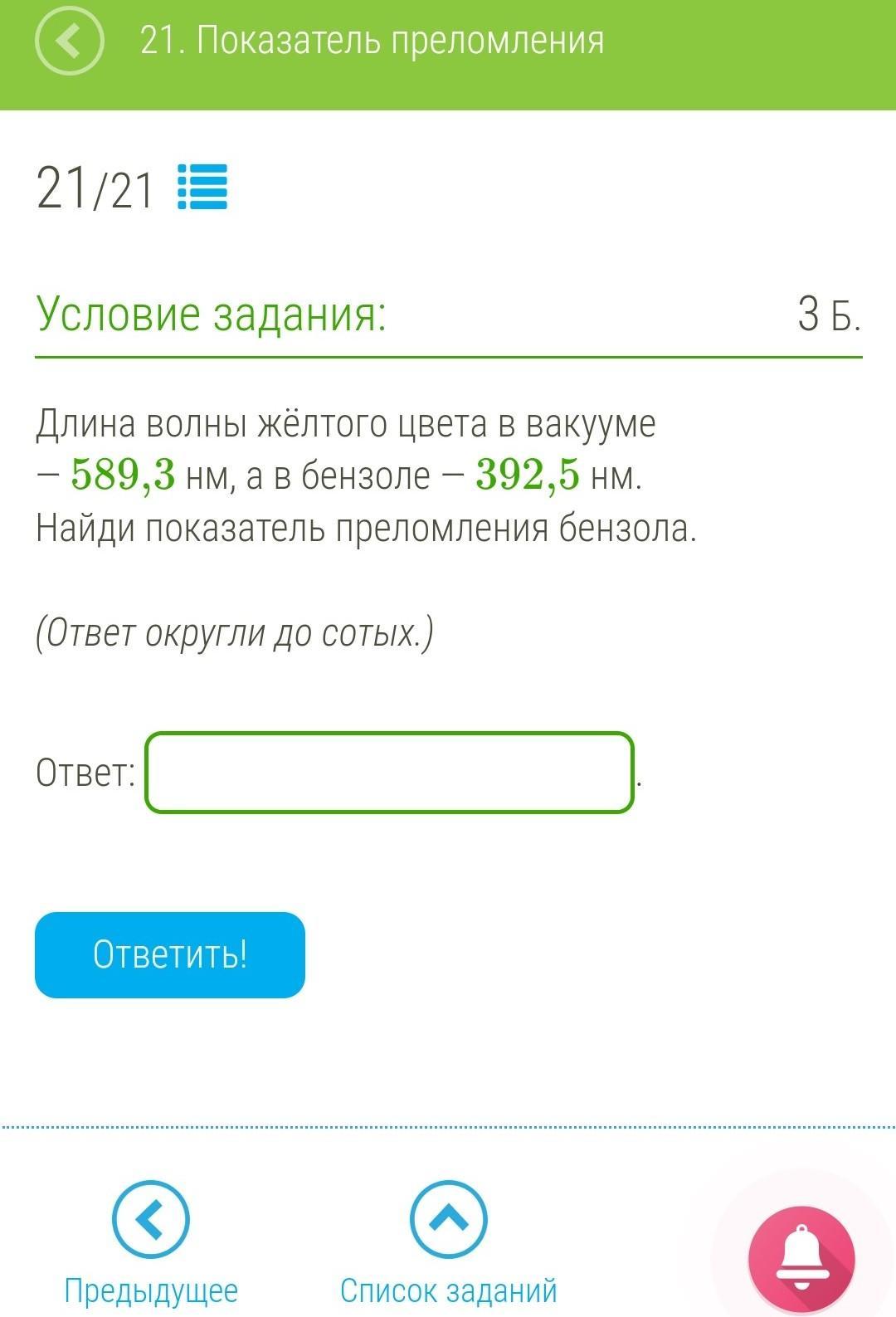 Длина световой волны λ в среде с показателем преломления n связана с длиной волны в вакууме λ₀ соотношением:
