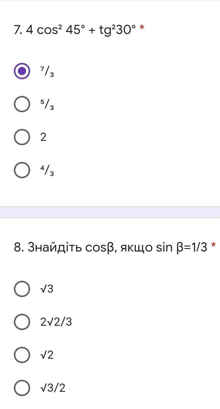 сosβ=√(1-sin²β)=√(1-1/9)=√(8/9)=√(4*2)/3=2/3 * √2=2√2/3 - ответ 2.