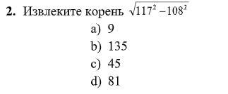 2. корень из ((117-108)*(117+108)) = корень из (9 * 225) = корень из (3*3*15*15) = 3*15 = 45