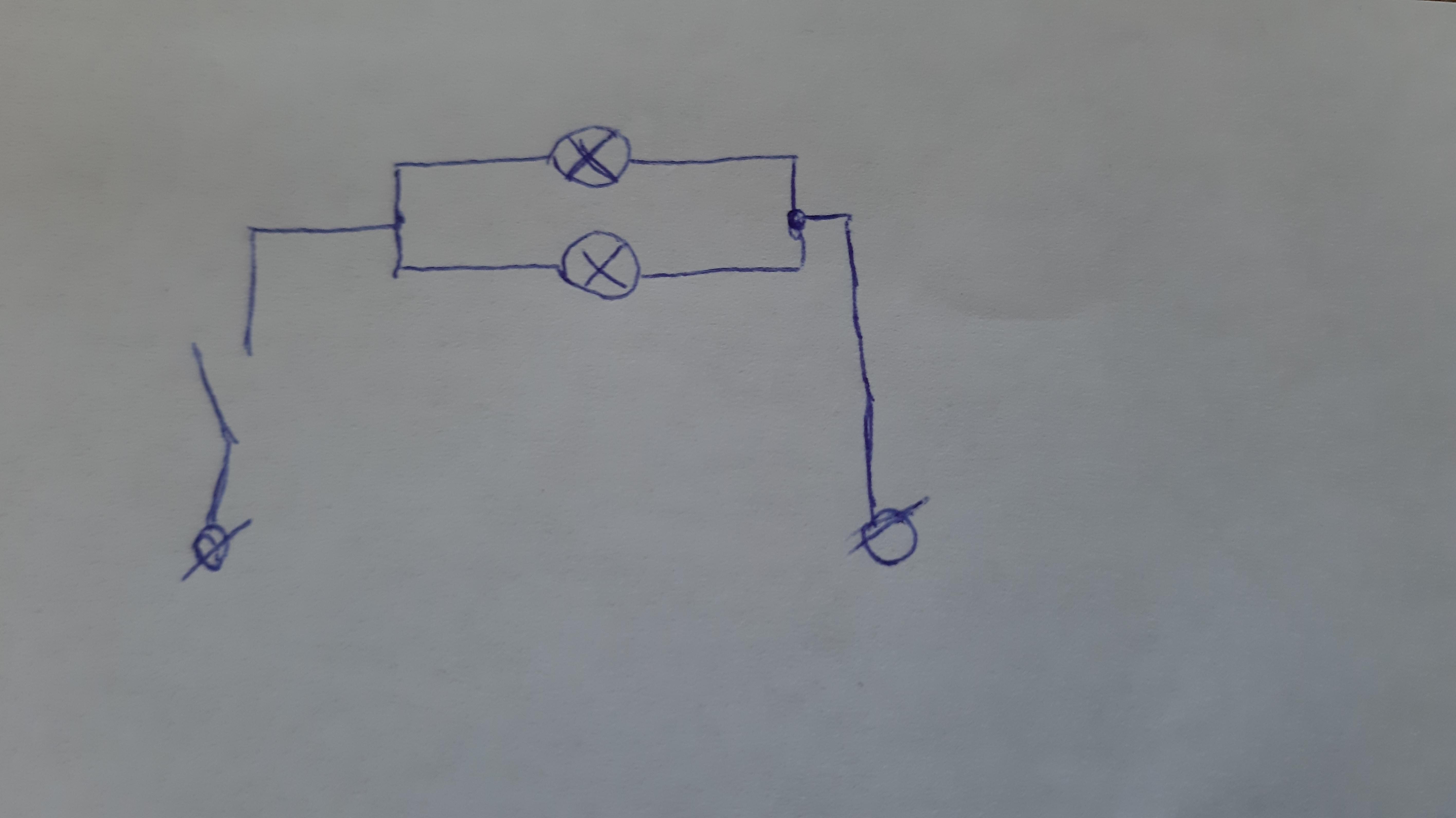 СРОЧНО.Начеритите схему электрисеской цепи содержащей две паралельно соединенные лампы,которые через ключ присоеденены к источнику тока