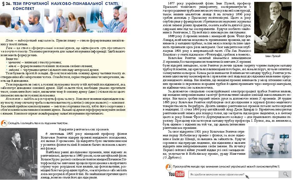 1. 8 листопада 1895 року німецький професор фізики Вільгельм Рентген відкрив промені невідомого походження, які назвав Х-променями. Саме його вважають першовідкривачем, бо він перший почав систематично їх вивчати.