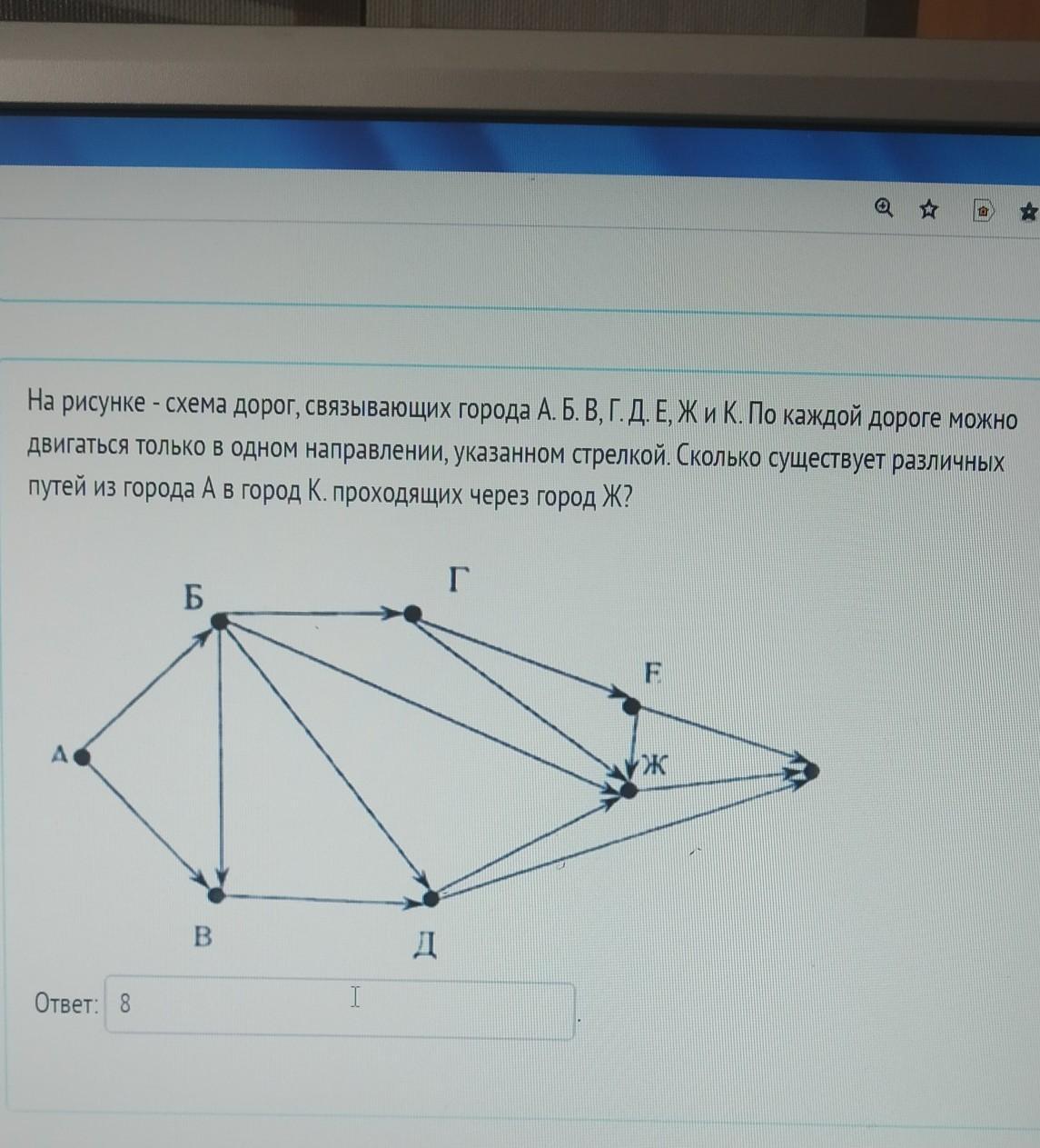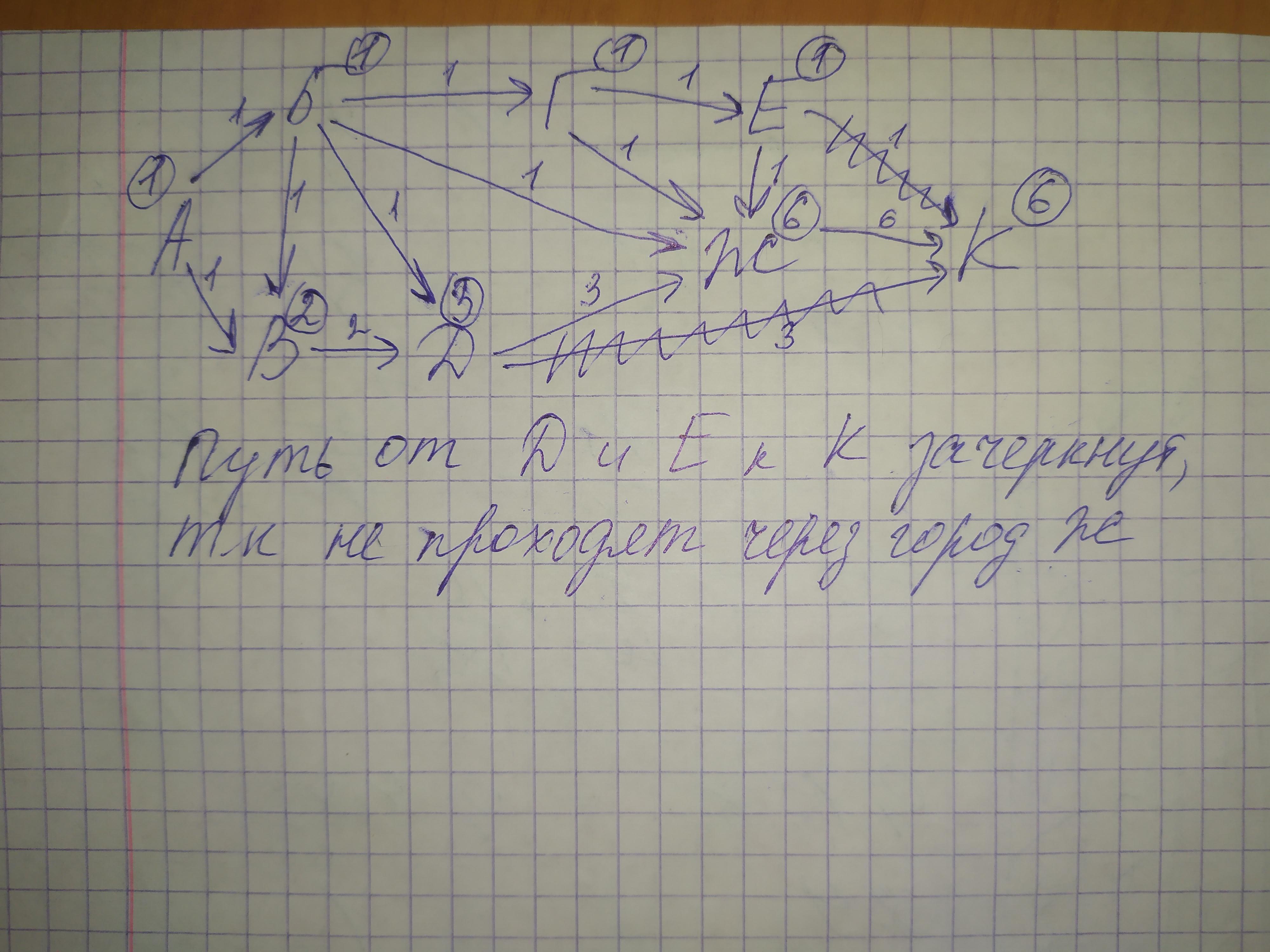 К=Ж=6, путь Е и Д отбрасывает, так как они не проходят через путь Ж