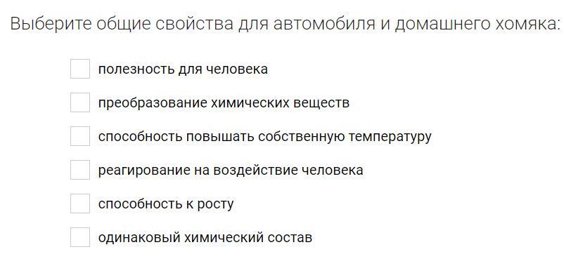 Объяснение: потому что автомобиль не растёт, а хомяк не имеет химический состав.