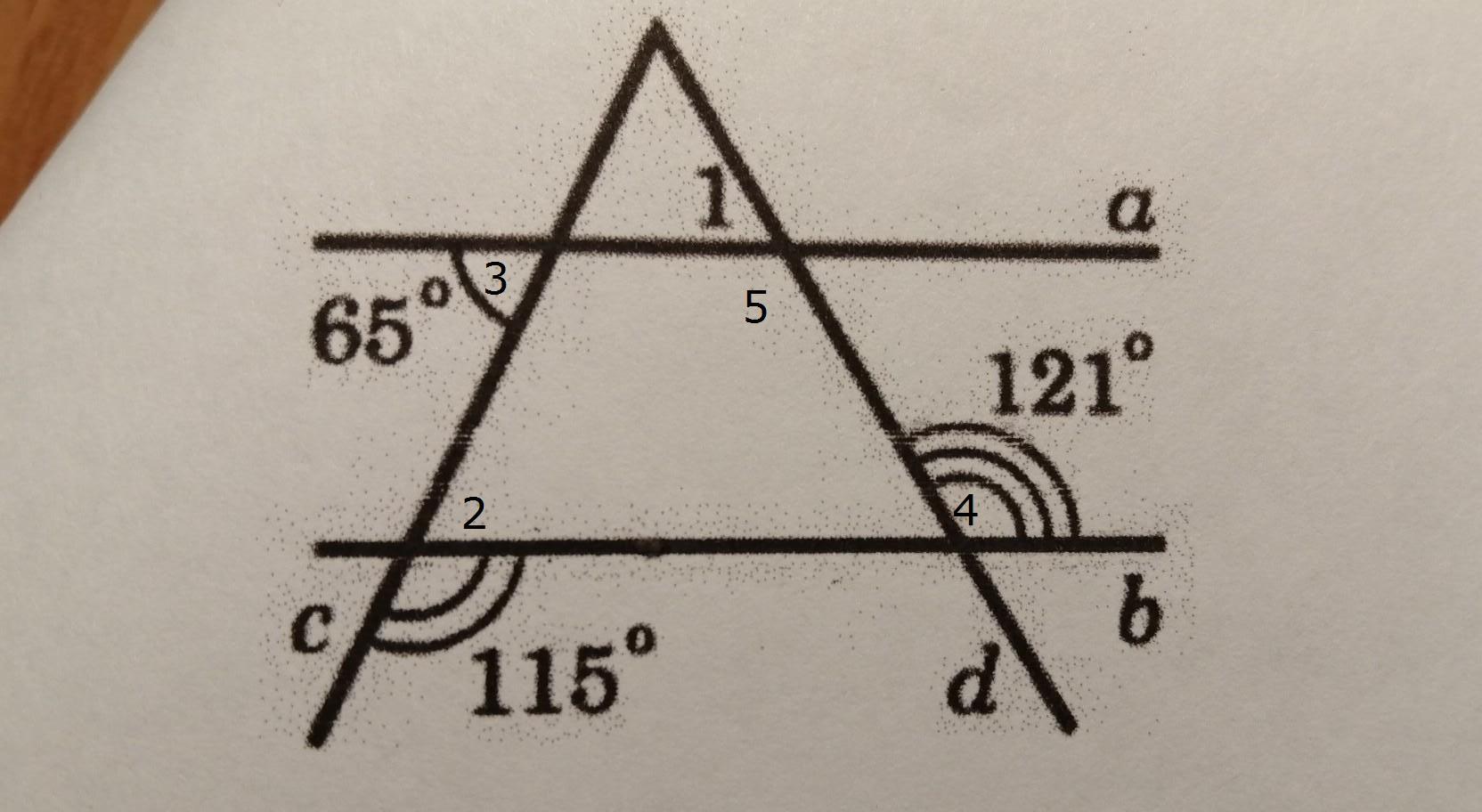 Так как a║b , d- секущая то ∠4=∠5=121° как накрест лежащее.