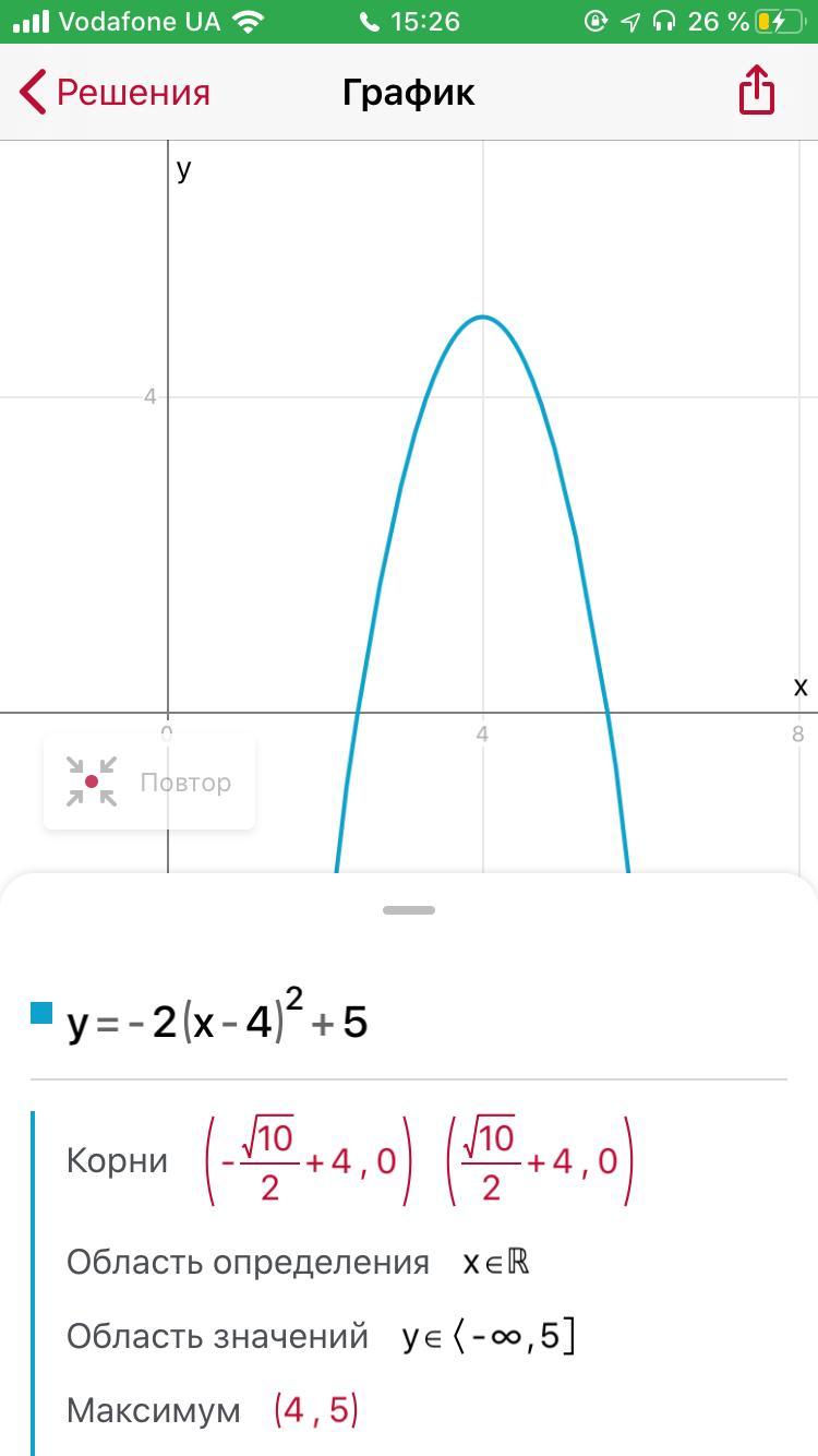 Постройте график функции y = - 2(x - 4)² + 5
