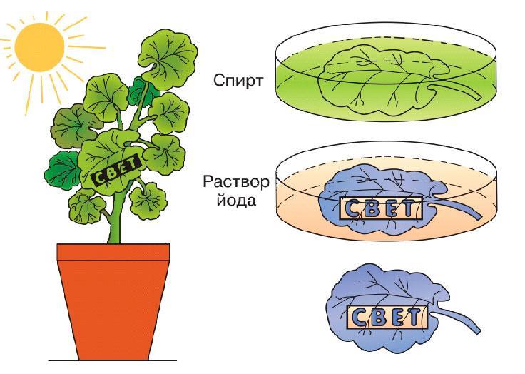 1. Поставить какое-нибудь комнатное растение в тёмное место на 3 суток, чтобы произошёл отток питательных веществ от листьев.
