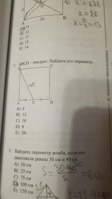 Т.к Е -середина АВ, то,если АЕ=х, то АD=2х, по теореме Пифагора (2√5)²=х²+4х²