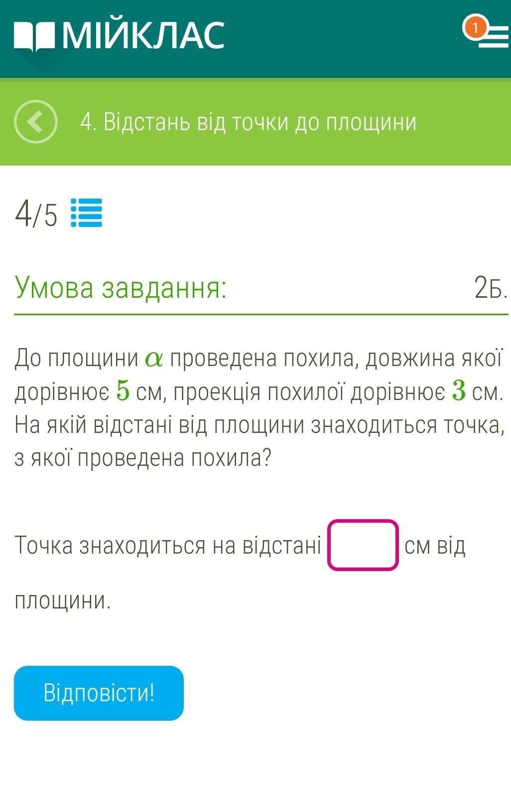 Имеем египетский треугольник, в котором гипотенуза равна 5см - это наклонная, катет - проекция наклонной -3 см, а второй катет - искомое расстояние - 4 см.