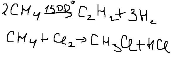 CH4 - метан, C2H2 этин, или ацетилен, CH3Cl-хлорметан, HCl- соляная кислота, H2 - водород, Cl2 - хлор