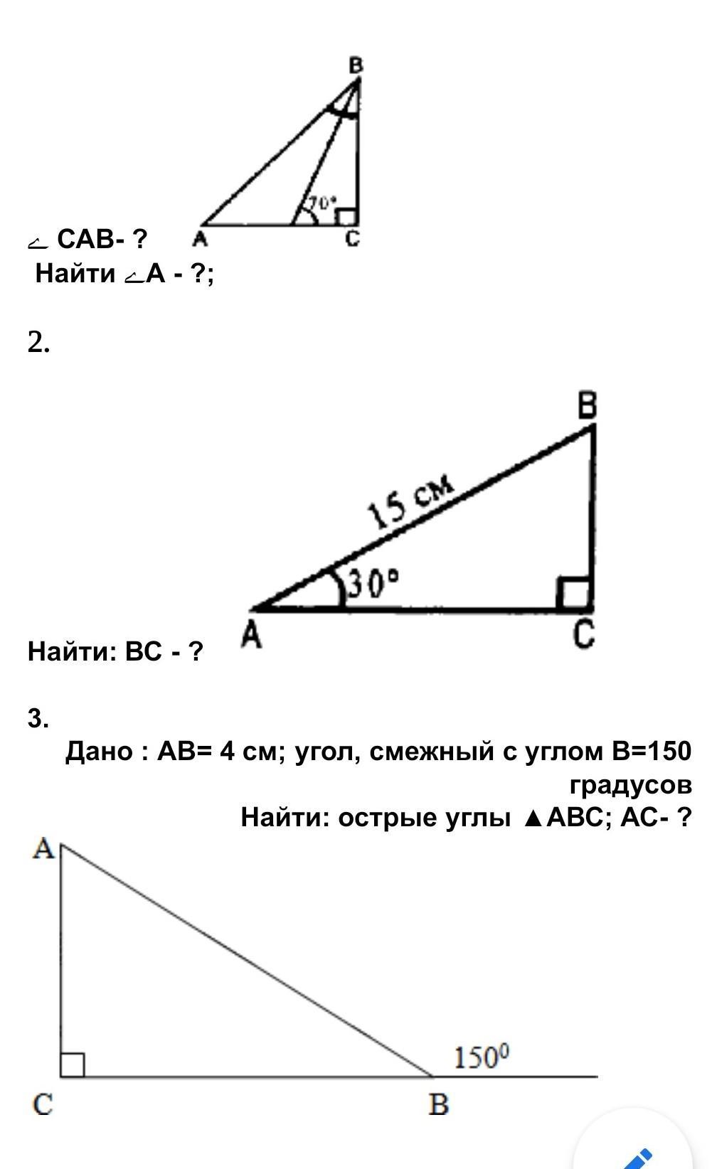 2)Против угла в 30° лежит катет равный половине гипотенузе АВ, значит ВС=15:2=7,5 (см).