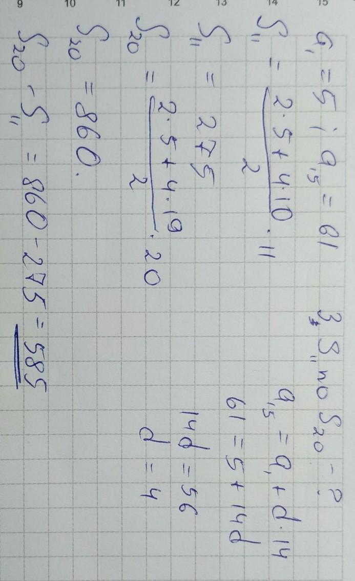 В арифметичній прогресії (а)n а1= 5, a15 = 61. Знайти суму членів ше