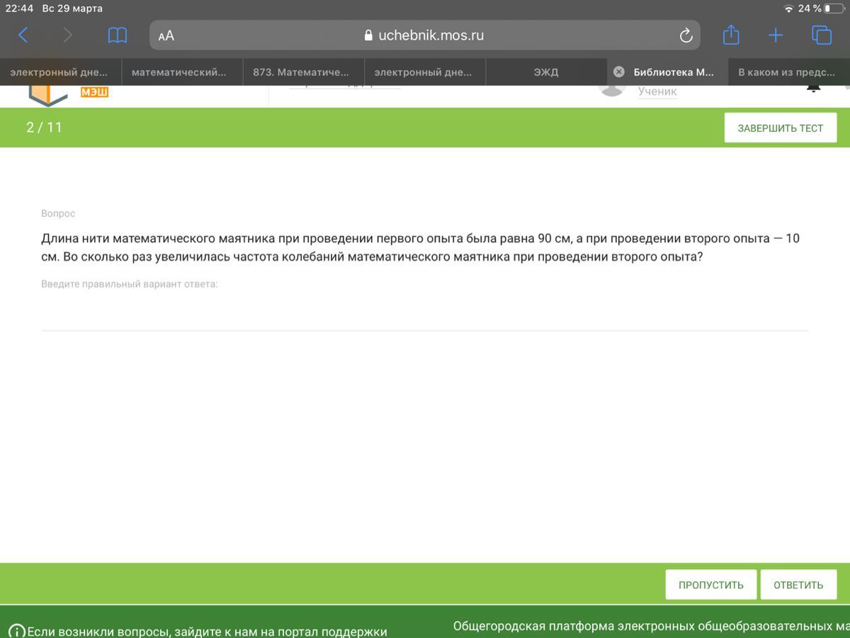 т.к. длина уменьшилась в 9 раз, то частота увеличилась в 3 раза, т.к. длина под корнем.
