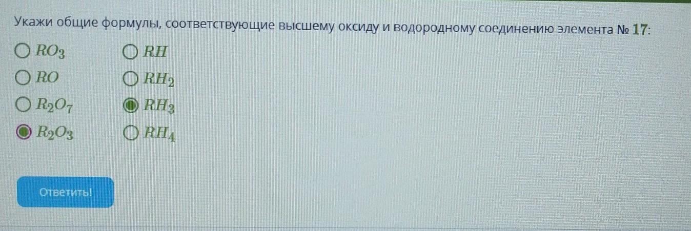 Укажите общие формулы, соответствующие высшему оксиду и водородному соединению элемента №17.