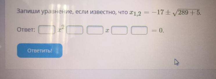 Квадратное уравнение имеет вид ax²+bx+c=0, подставив найденные коэффициенты, получим 1x²+34x-5=0
