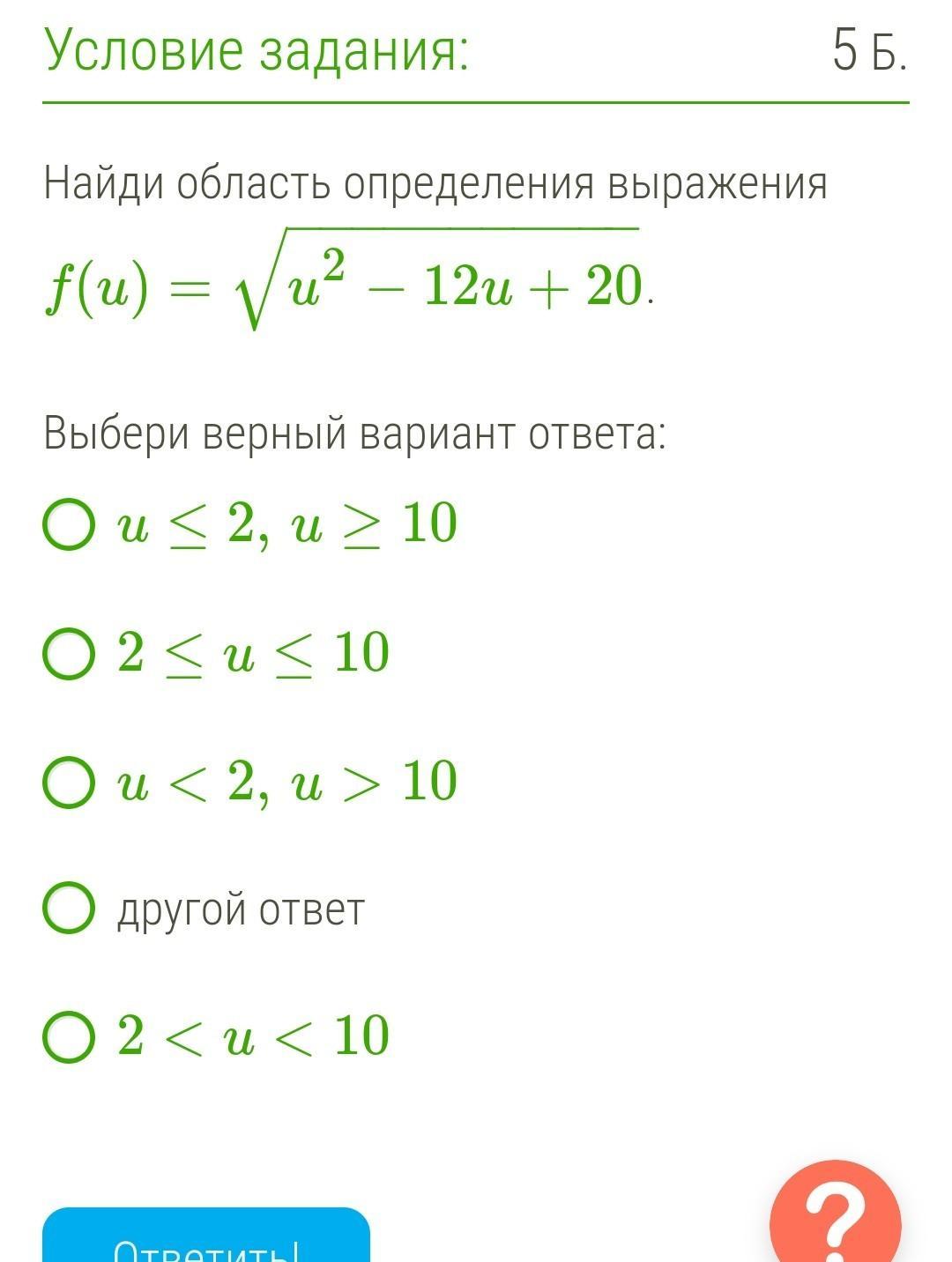 Найдём все значения u, для которых подкоренное выражение положительно или равно 0: