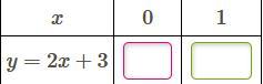 задаем значение x = 0, подставляем в уравнение y = 2x + 3, т.е. y = 0 + 3, y = 3