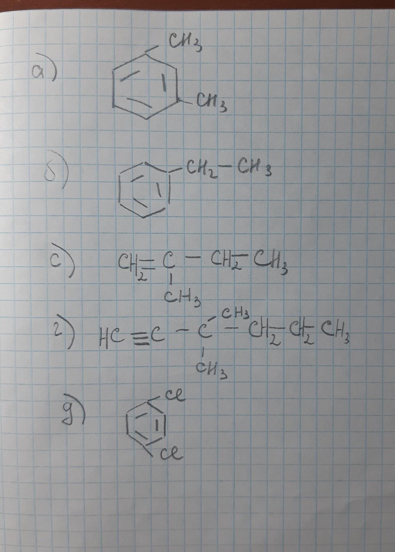 а)1,3-диметилбензол б)2-этилбензол с) 2-метилбутен г)3,3-диметилгексин-1 д)2,4-дихлорбензол