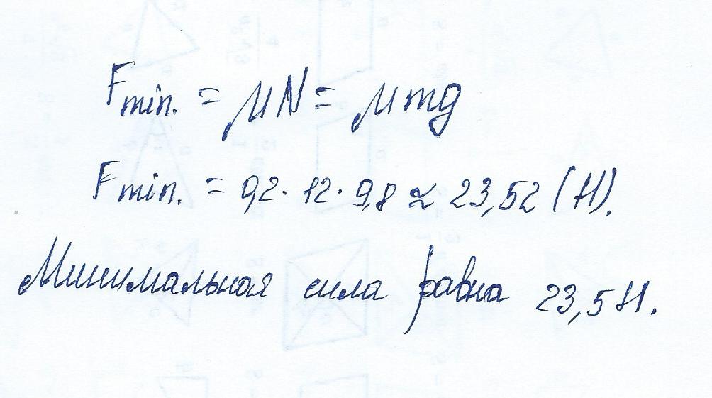 По горизонтальному столу равномерно тянут ящик массой 12 кг. Какую минимальную силу направленную вдоль стола нужно при этом прикладывать? Коэффициент трения между столом и ящиком 0,2 кг