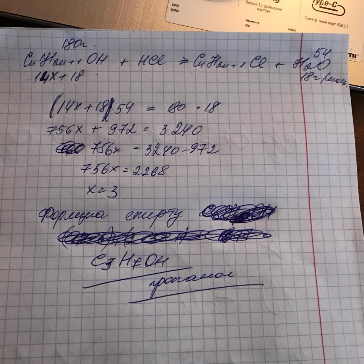 внаслідок взаємодії насиченого одноатомного спирту масою 180 г з достатньою кількістю гідроген хлориду утворилася вода масою 54г. Який спирт було взято для реакції