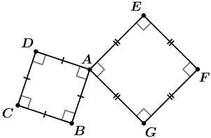 △BAE, так как DA=BA, AE=AG, угол DAG равен углу BAE и они равняются 90+ угол BAG