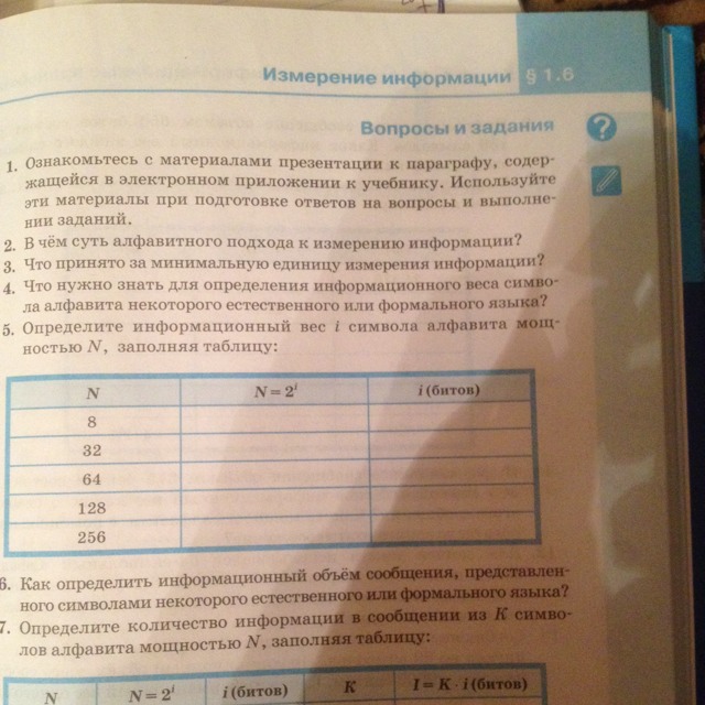 Определите информационный вес i символа алфавита мощностью N, заполняя таблицу:( задание 5)